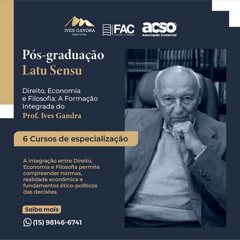 <p style="text-align: justify; "><span style="font-family: Arial;">A ACSO, por meio da Faculdade do Comércio (FAC), fechou parceria com o Instituto Ives Gandra da Silva Martins de Direito, Filosofia e Economia, para oferecer seis cursos de pós-graduação voltados a advogados e profissionais do Direito que buscam formação estratégica e interdisciplinar. A iniciativa tem como objetivo ampliar a formação jurídica tradicional, integrando Direito, Economia e Filosofia, alinhada ao pensamento do jurista Ives Gandra da Silva Martins, referência nacional na área constitucional e na defesa das liberdades individuais.</span></p><p style="text-align: justify; "><span style="font-family: Arial;">“A proposta é oferecer aos advogados uma formação diferenciada, que una sólida base jurídica com compreensão econômica e filosófica da realidade”, afirma o vice-presidente da ACSO, Nilton Cezar. Segundo ele, a parceria busca preparar profissionais para os desafios contemporâneos do Direito, cada vez mais impactado por transformações tecnológicas, institucionais e econômicas.</span></p><p style="text-align: justify; "><span style="font-family: Arial;">Entre os cursos oferecidos estão: Direito, Inovação Tecnológica e Comunicação Digital no Ambiente Corporativo; Tributação no Ambiente Empresarial: Estratégia e Eficiência Fiscal; Direito e Gestão do Agronegócio, Meio Ambiente e ESG; Gestão de Conflitos Empresariais: Arbitragem e Práticas Extrajudiciais; Direito Notarial e Registral: Advocacia Extrajudicial Cartorária; e Direito Constitucional na Era da Inteligência Artificial: Jurimetria, Poder e Democracia Digital. As especializações abordam temas como direito digital, inteligência artificial, planejamento tributário estratégico, sustentabilidade no agronegócio, arbitragem e jurimetria aplicada ao constitucionalismo.</span></p><p style="text-align: justify; "><span style="font-family: Arial;">Paralelamente ao lançamento da iniciativa, Nilton Cezar entrevistou o professor Ives Gandra da Silva Martins, que destacou a centralidade da ética na formação e no exercício da advocacia. Com mais de seis décadas de atuação profissional e acadêmica, o jurista defendeu que o advogado deve ter na ética o principal fundamento de sua carreira. “O advogado que é ético em sua formação termina sendo reconhecido por todos. Pode até perder naquele momento para um advogado menos ético, mas, com o tempo, será respeitado”, afirmou.</span></p><p style="text-align: justify; "><span style="font-family: Arial;">Durante a conversa, o professor também ressaltou três pilares para os novos profissionais do Direito: ética, estudo permanente e cordialidade no trato com colegas, magistrados e membros do Ministério Público. Segundo ele, a formação humanística continua sendo essencial para a compreensão plena da função do advogado na sociedade. Gandra lembrou que, mesmo aos 91 anos, mantém o hábito de estudar diariamente, reforçando que o aprendizado contínuo é indispensável ao exercício da profissão.</span></p><p style="text-align: justify; "><span style="font-family: Arial;">De acordo com Nilton Cezar, a proposta dos cursos reflete justamente essa visão mais ampla da advocacia. “A ideia é formar profissionais com visão humanística e estratégica do Direito, capazes de compreender não apenas as normas jurídicas, mas também os contextos econômicos, sociais e tecnológicos que influenciam as decisões públicas e privadas”. As especializações representam um novo passo na qualificação profissional voltada às transformações do ambiente jurídico contemporâneo. Para mais informações, entre em contato pelo WhatsApp 15 98146.6741, com Carla Guimarães.</span></p>